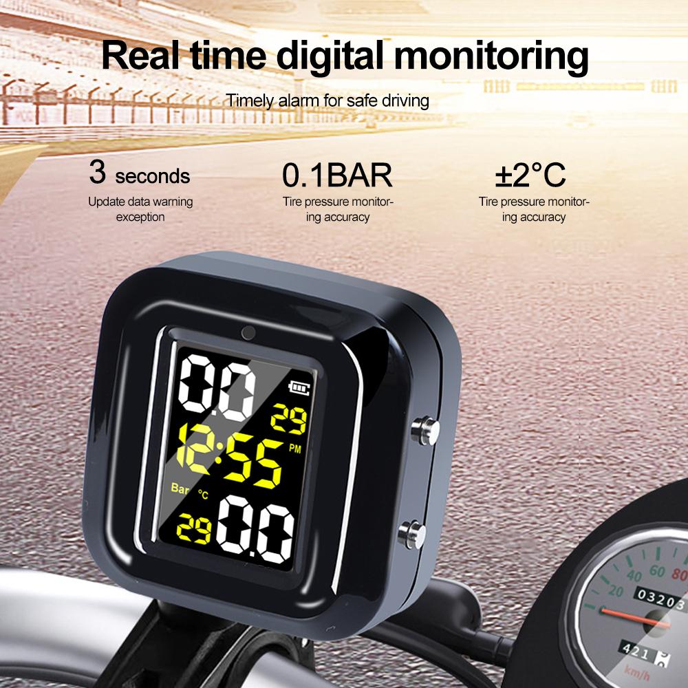 Motorcycle Tire Pressure Monitor Digital Display 2 Wheel Tyre External Sensor Motorcycle TMPS Wireless Tire Pressure Detector