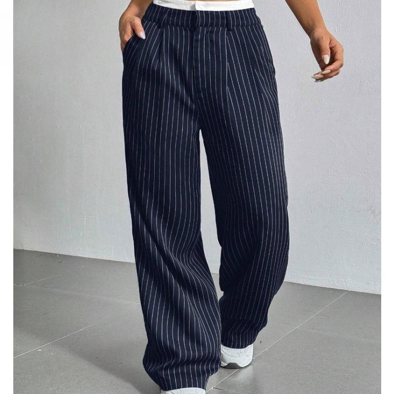 Women's Fashion Casual Stripe Print High Waist Trousers Pants & Capris