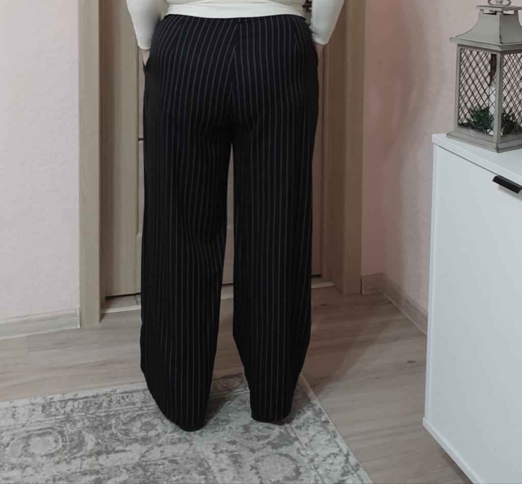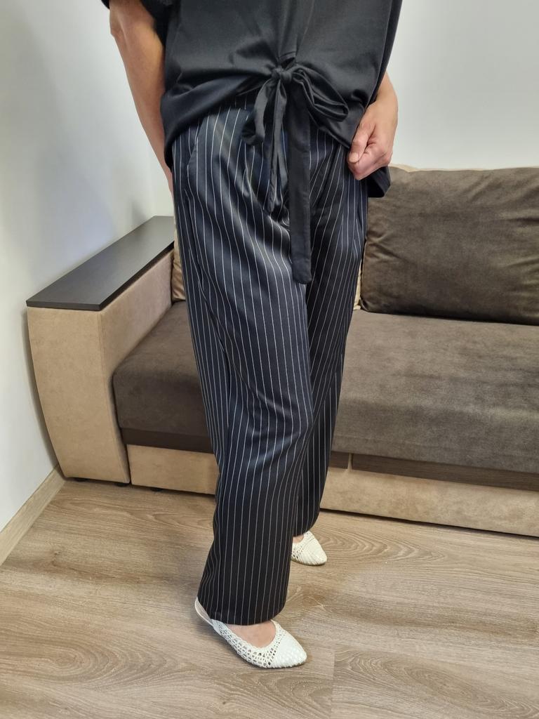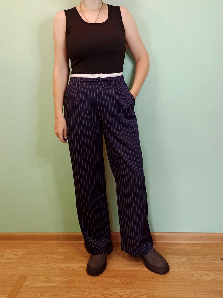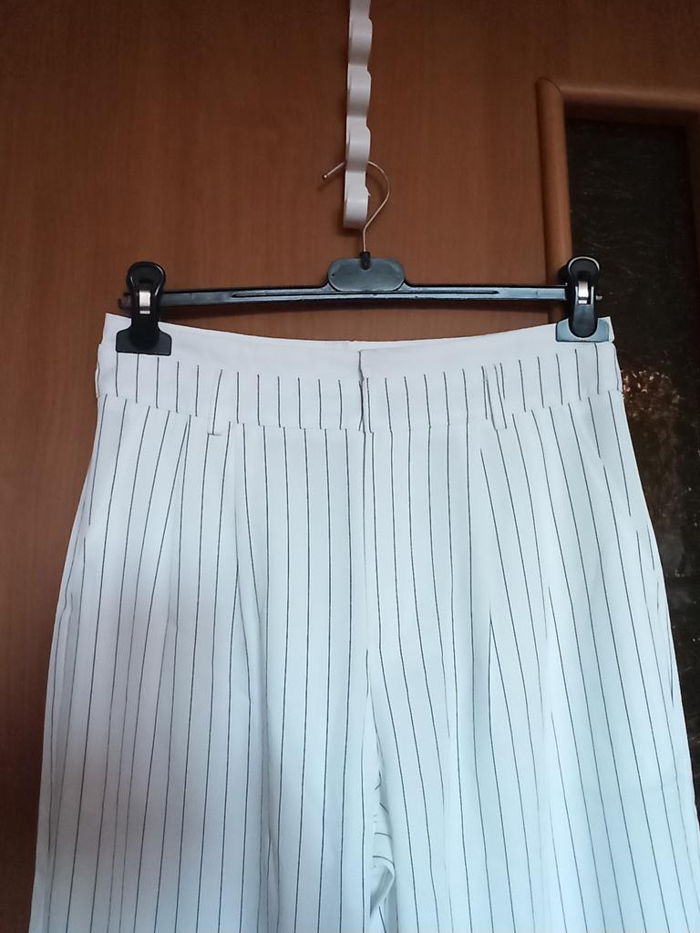 Cute striped trousers. The material is pleasant, soft, does not wrinkle, does not pill.. Style is suit-like. Silhouette is straight, fasten with a button and a hidden zipper. Side deep pockets. Ordered 2XL for WT85, HB 116.