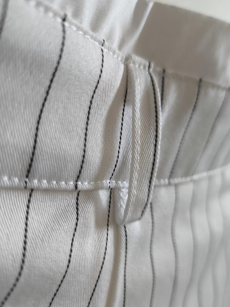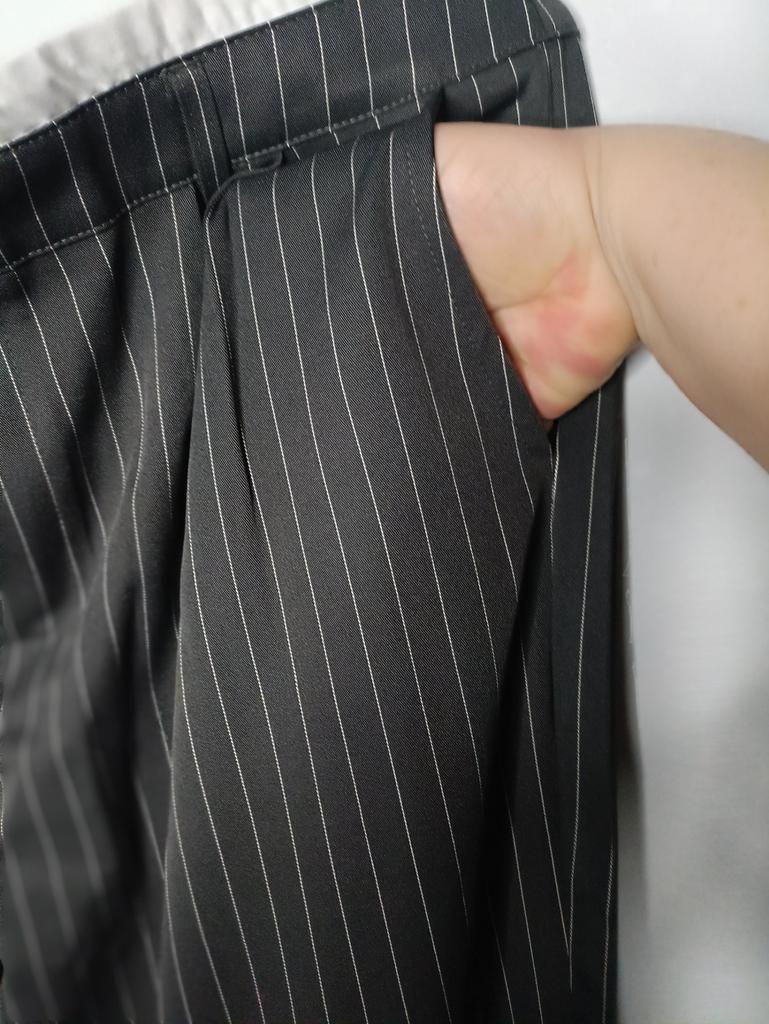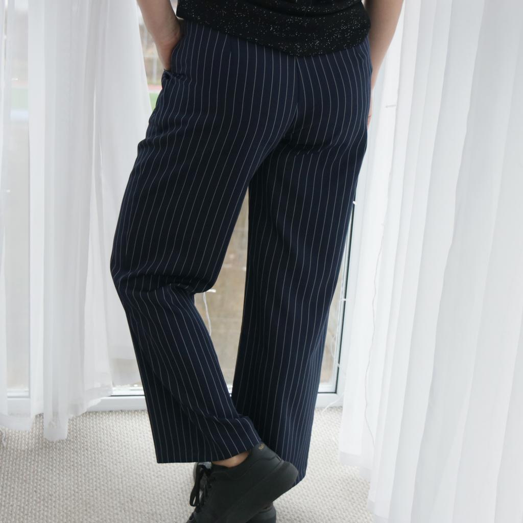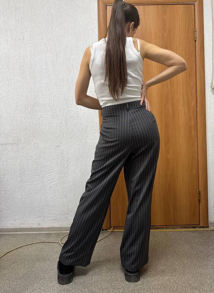 Cute striped trousers. The material is pleasant, soft, does not wrinkle, does not pill.. Style is suit-like. Silhouette is straight, fasten with a button and a hidden zipper. Side deep pockets. Ordered 2XL for WT85, HB 116.