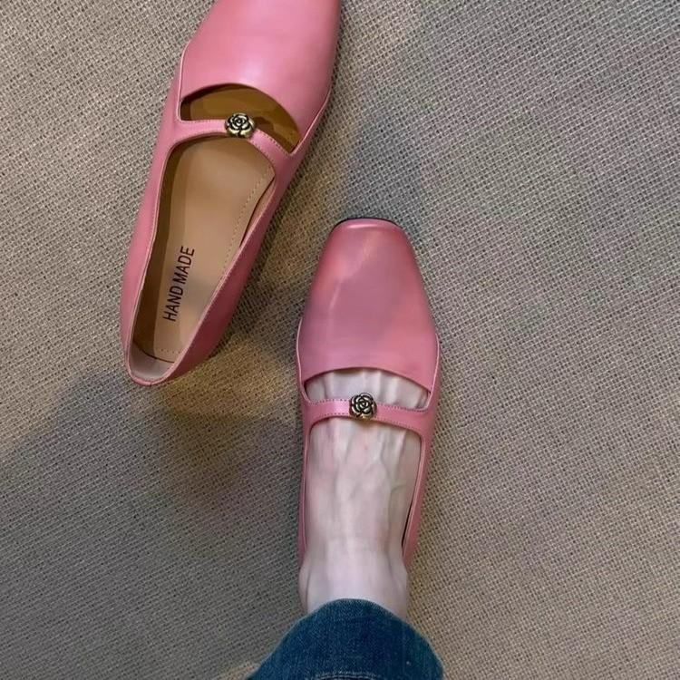 Soft Leather Version~ French Xiaoxiangfeng Shallow Mouth Flat-soled Single Shoes Women's 2025 New Pink Soft Leather Square Head Mary Jane Shoes