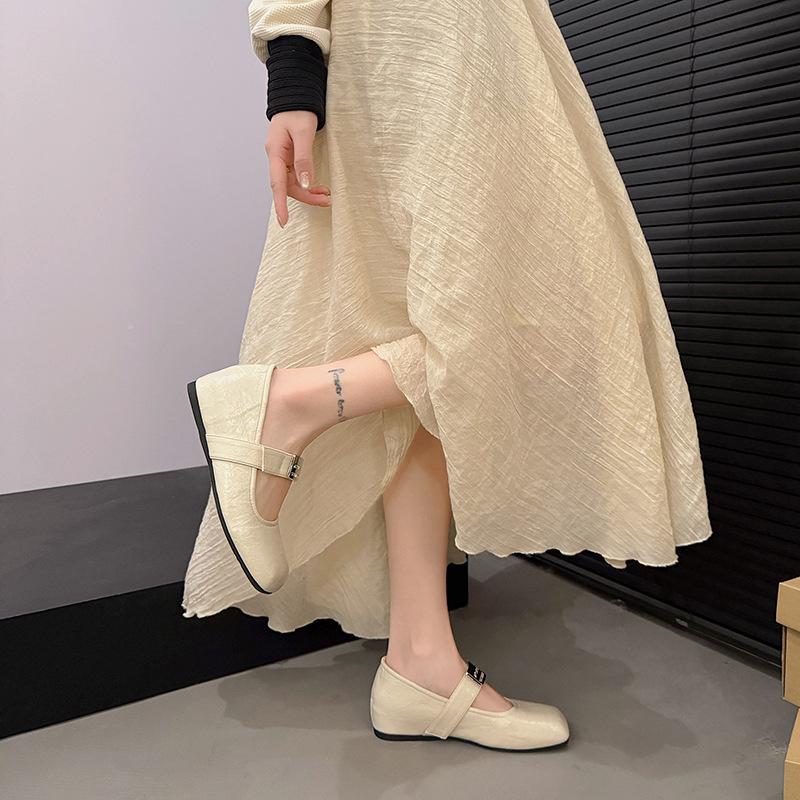 Fashion Shallow Single Shoes Women's Summer Retro French Evening Breeze Word with Inner Height Increase Mary Jane Shoes Women's Grandma Shoes