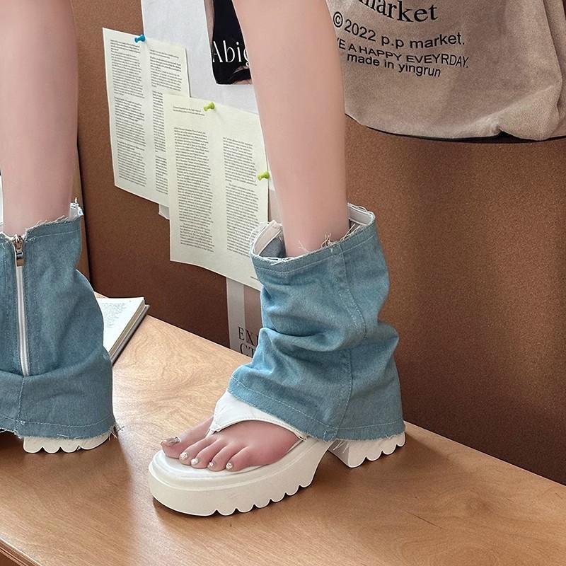 2025 Summer New Dark Sweet Cool Toe Muffin Thick-soled Jeans Tube Sandals Open-toe Mopping Fashion Booties