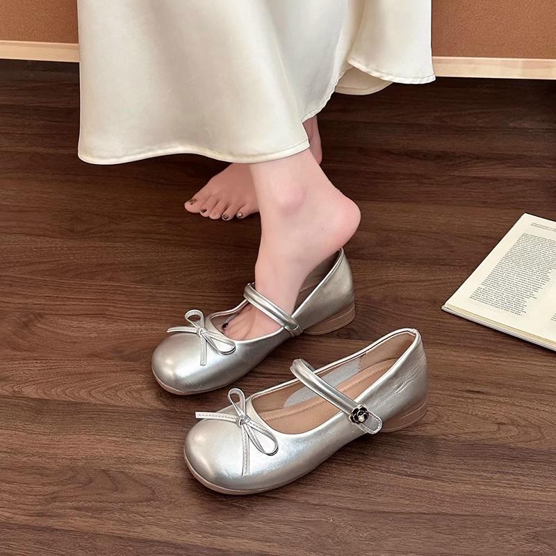 French Retro Fashion Versatile Light Mouth Flat-soled Single Shoes Women's Summer Niche Casual Round Head Bow Mary Jane Shoes
