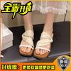 Wedge Heel French One-word with Open-toe Sandals for Women In Summer 2025, New Versatile Two, Wearing Leopard Print One-word Slippers for Women