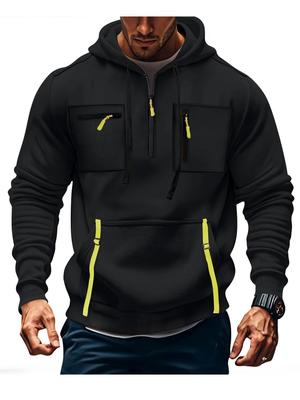 Men's Sweatshirt Hoodie Zipper Arm Pocket Cardigan Men's Sports Large Size Casual Hoodie