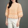 ZANZEA Women Casual Round Neck 3/4 Sleeve Loose Plaid Print Blouse