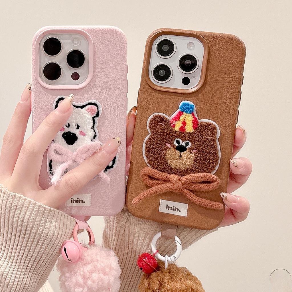 Bow Embroidered West Highland Lychee Pattern IPhone16 15 Mobile Phone Case Suitable for Apple 14 13pmax Cartoon