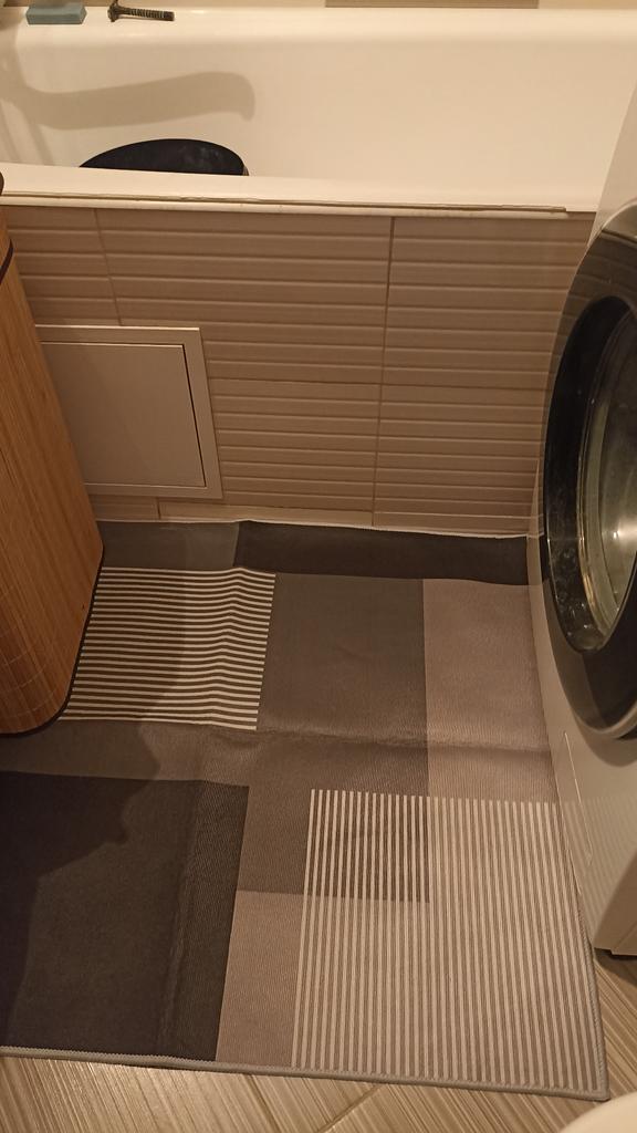 I already bought one of these in a smaller size. This one differs slightly in color tone. But on the reverse side, there's a rose pattern, while the previous one just had anti-slip dots scattered about. The quality is excellent, it washes easily, and dries quickly.