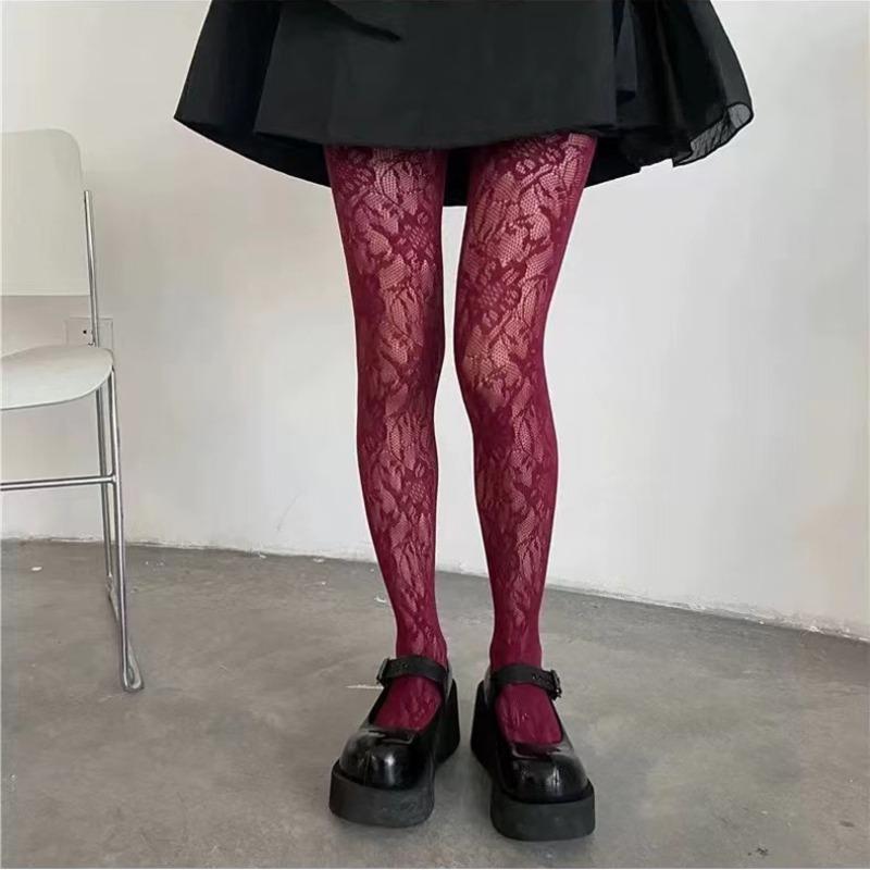 Women Sexy Retro Floral Stockings Mesh Hollow Out Silk Stockings JK Lolita Fishnet Lace Breathable Y2K Tights Pantyhose Leggings