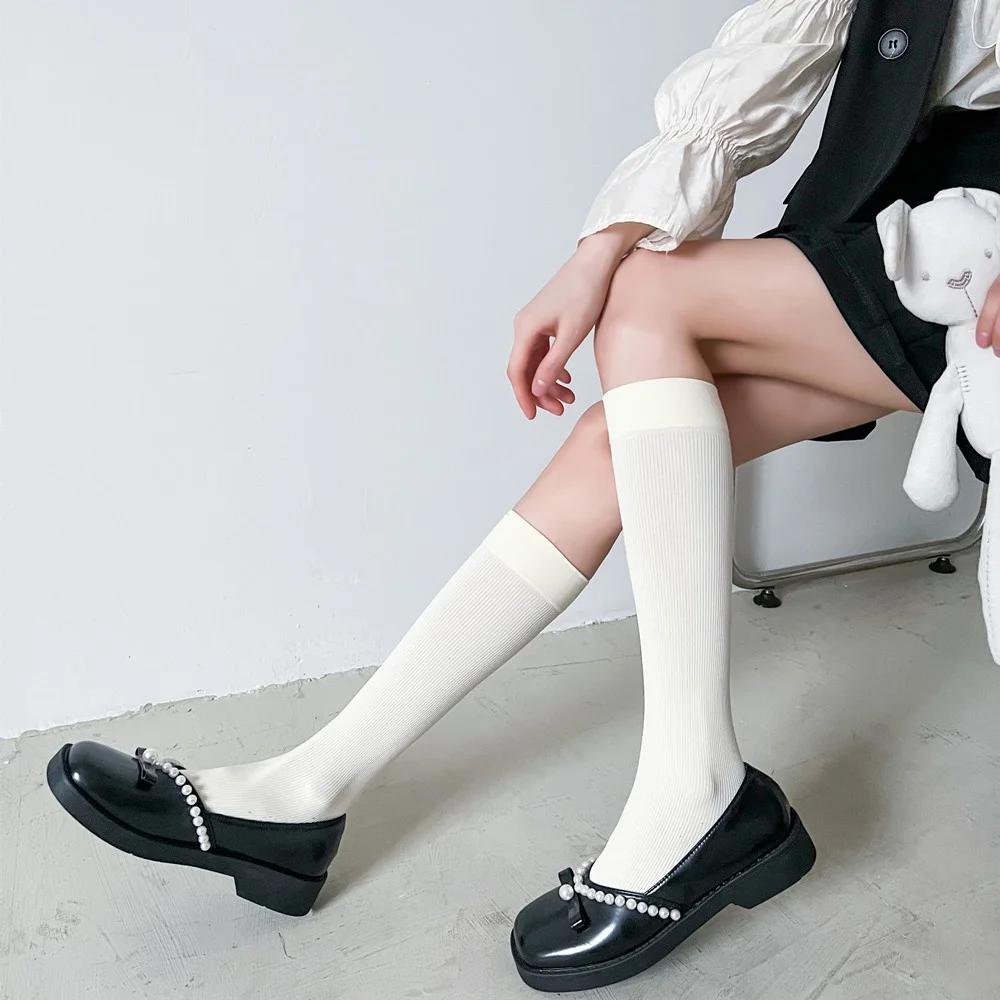 Women JK Stockings Lolita Calf Socks White Japan Summer Simple Striped Mid Tube Sock Thin Section Micro Pressed Black Pile Socks