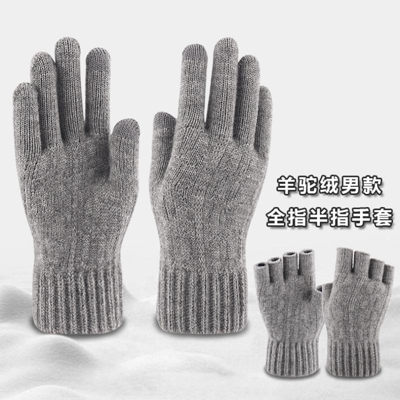 Winter Touch Screen Gloves Men's Finger Warm Piled Thickened Jacquard Wool Half Finger Knitted Gloves