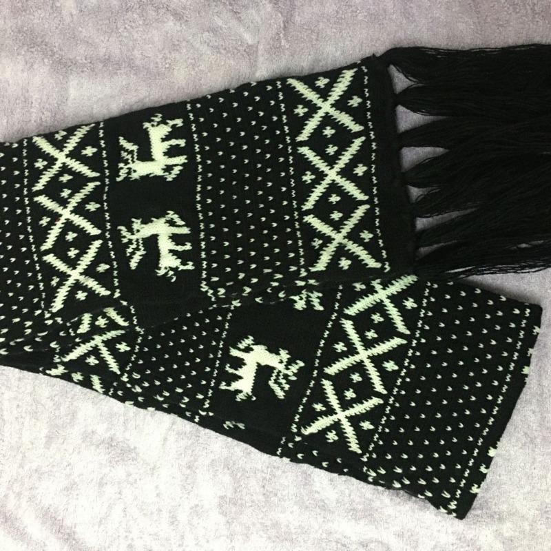 Couple Wool Warm Deer Knitted Scarf Christmas Snowflake Deer Scarf Double-sided Fashion Scarf