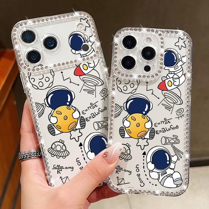 Diamond Astronaut Pattern Phone Case For iPhone 16e 17 Air 16 15 14 Pro Max 13 17 Pro Max 17 16 15 Plus Shockproof Bling Diamond TPU Soft Cover