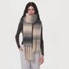 Imitation Cashmere Plaid Women's Winter Enlarged and Widened 50cm Color Matching Warm and Comfortable Striped Plaid Fringed Scarf Shawl