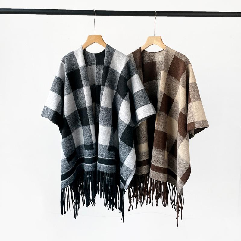 Classic Light Luxury Plaid Scarf Large Shawl High-end Plaid Double-sided Cape Cape Autumn and Winter Warm Scarf