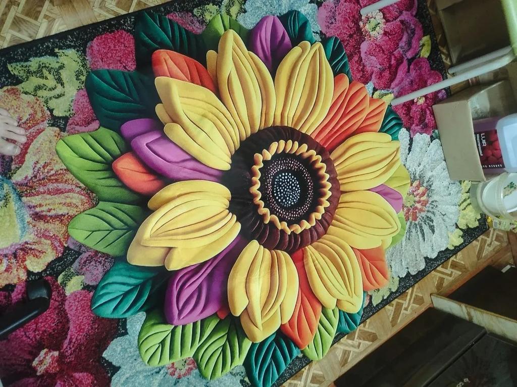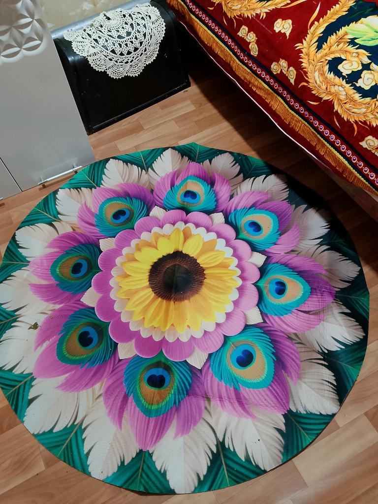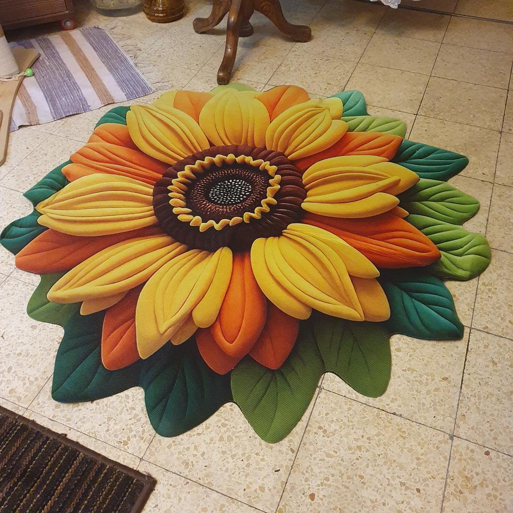 Living Room 3D Floor Mat Flower Carpet Circular Home Peony Flower Petal Shaped Living Room Bedside Mat