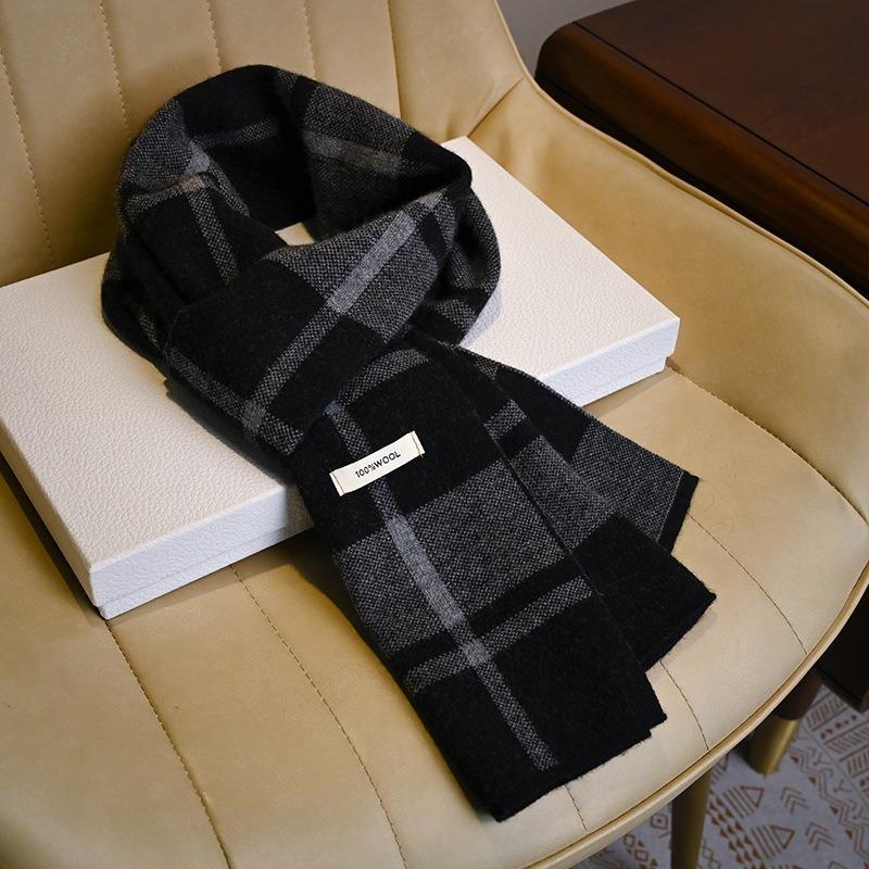 Black and White Plaid Wool Scarf, Thickened for Men In Winter, Gift for Elder Dad Boyfriend Scarf.