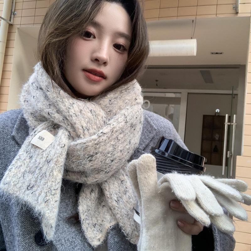 Wool Wool Scarf Women's Winter New High-end Sense Thickened Warm Knitted Scarf Couples Versatile