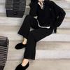 Casual Sweater Set Autumn Fake Two-piece Top + Wide-leg Pants Two-piece Set Knitted Sweater for Women