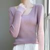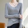 Crew Neck Sweater Tight Long-sleeved Inner with Large U-neck Knitted Sweater Early Autumn New Basic Versatile Solid Color Bottoming Shirt Women
