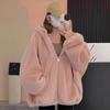 Plush Hooded Sweatshirt Jacket Women Autumn Winter Korean Style Loose Fleece Lined Thick Top