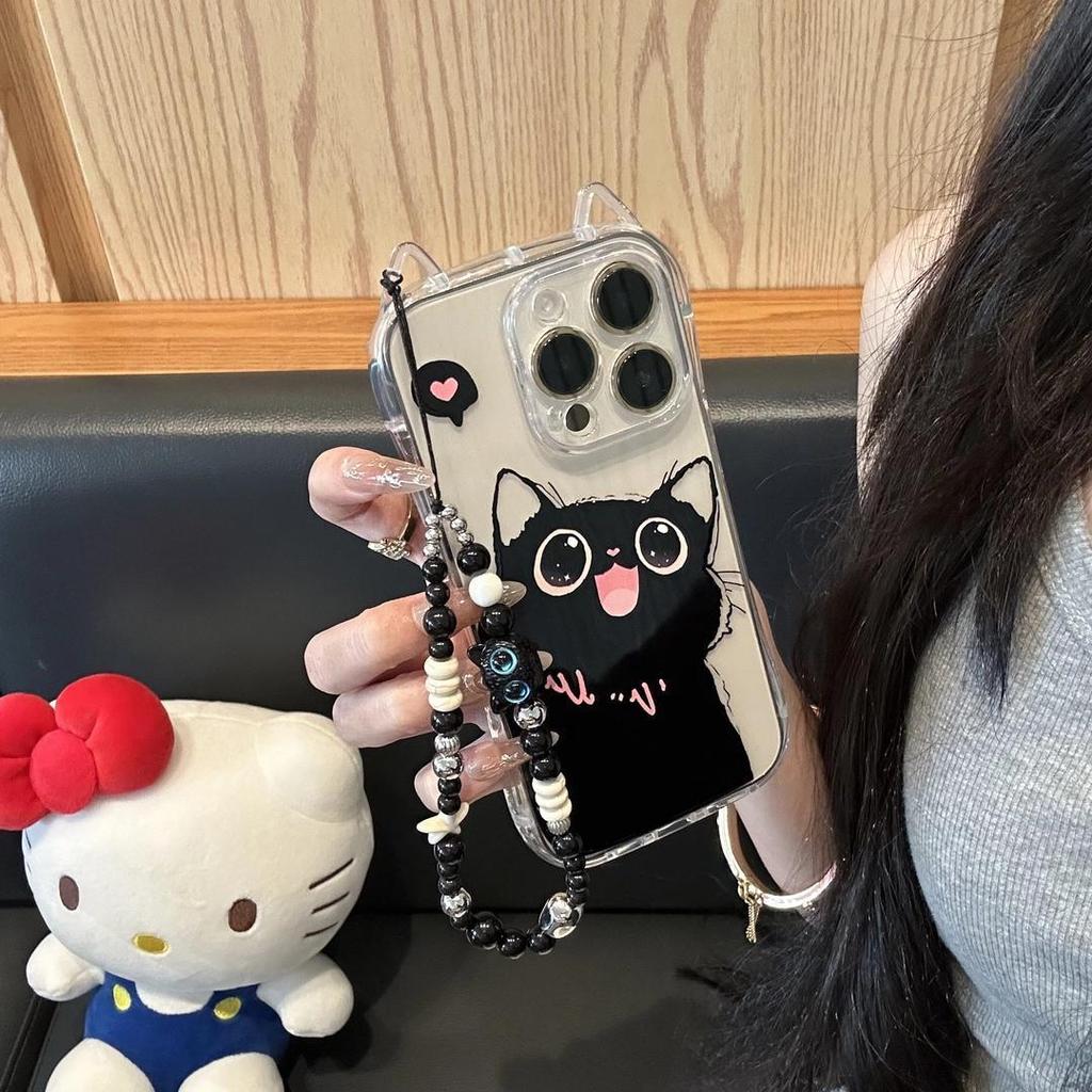 The New Models Are Suitable for Iphone16 Sweet and Cool Cat 13 with Bracelet Phone Case and Apple 15 Cat Ear Transparent Protective Case