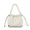 Chinese Beads and Beads On The Top Layer Cowhide Leather Hand Catching Flower Folded Lucky Bag Bag Hand Held One Shoulder Slanted Straddle Women's Bag