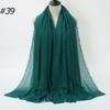 New Fashionable Women's Long Crinkled Cotton Linen Scarf with Tassel Edge - Solid Color Shawl