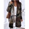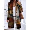 Women Plus Size Long Wollen Coat Autumn Printing Loose Warm Fashion Outerwear