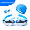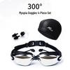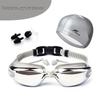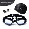 Fike High-Definition Waterproof Anti-Fog Swimming Goggles Set with Swim Cap, Large Plated Frame, Unisex
