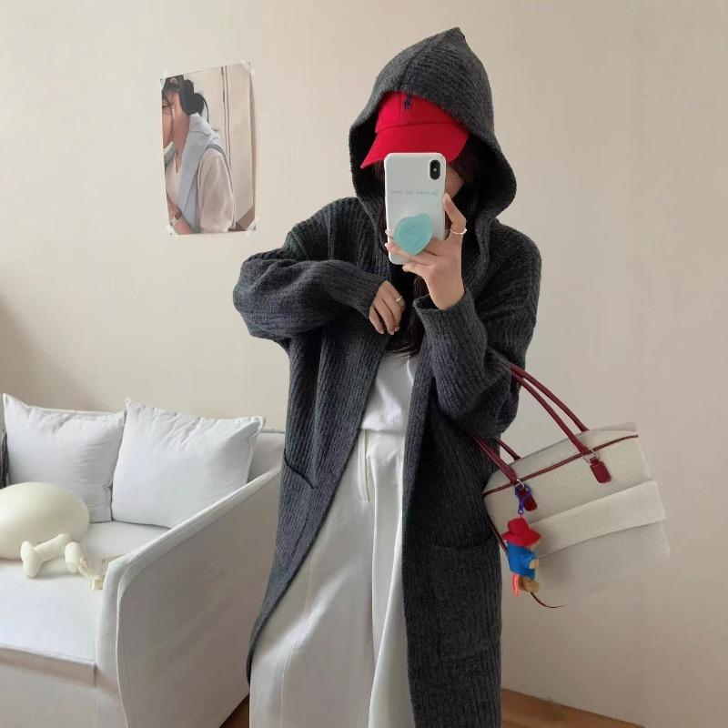 Hooded Loose Large Size Thickened Medium and Long Knitted Jacket New Lazy Wind Sweater Cardigan with Women Outside