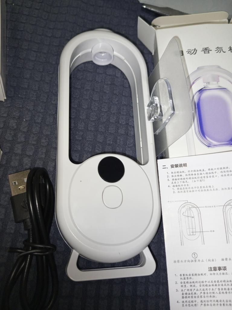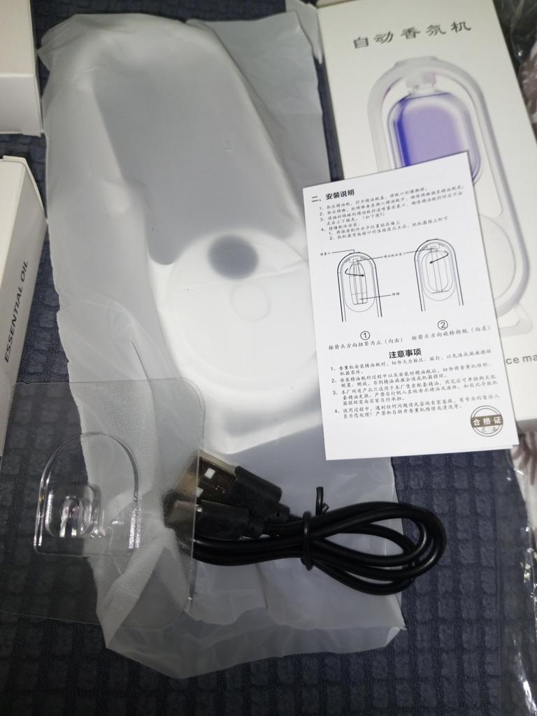 The diffuser was nice. The set includes instructions, scented liquid, self-adhesive hook, and cable.