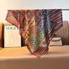 Imitation Velvet Silk Scarf Women'S 90 Square Scarf Double-Sided Heterochrome Splicing Printing Travel Beach Towel Sunscreen Shawl