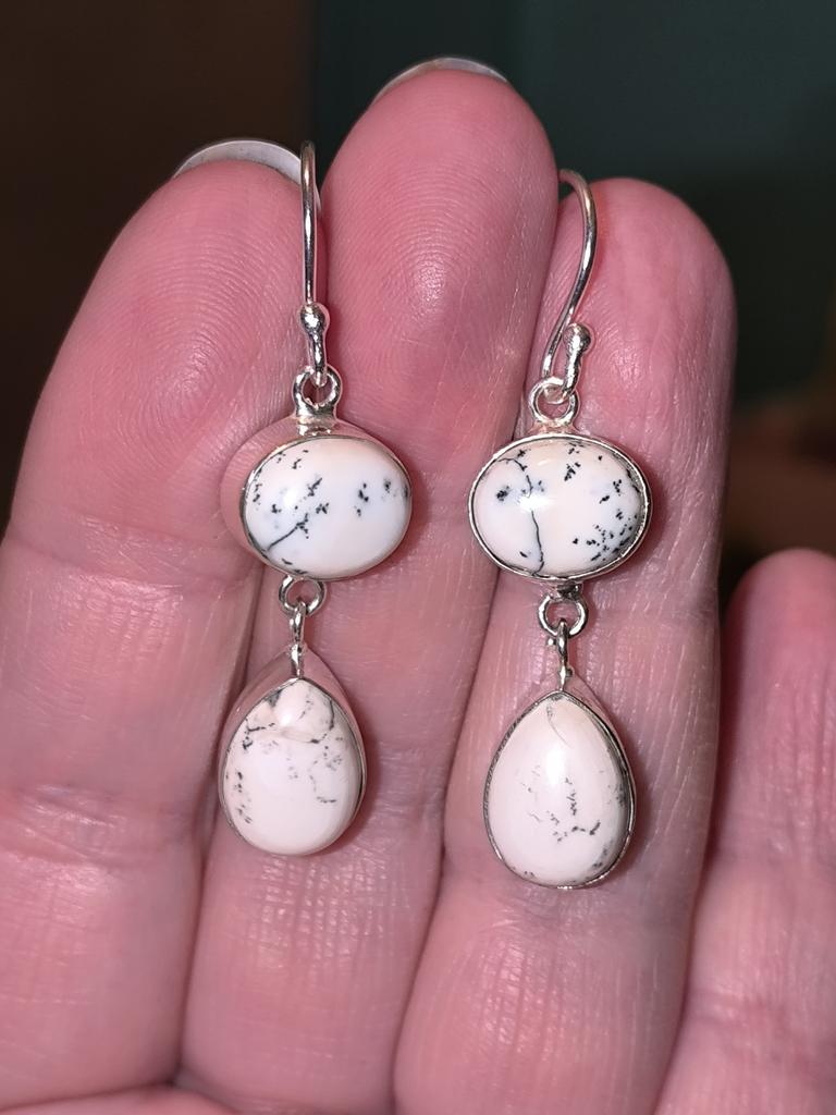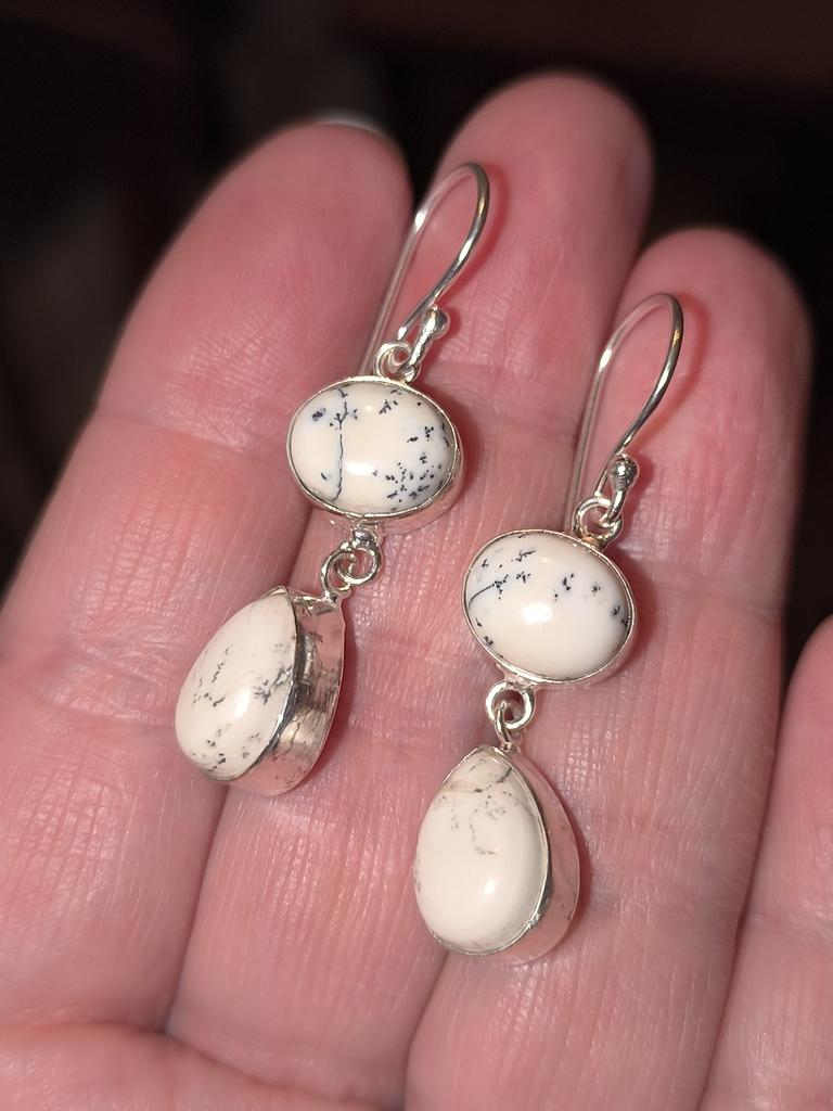 Rare Dendritic Opal Gemstone 925 Sterling Silver Jewelry Handmade Earrings 1.88" EE-73-14