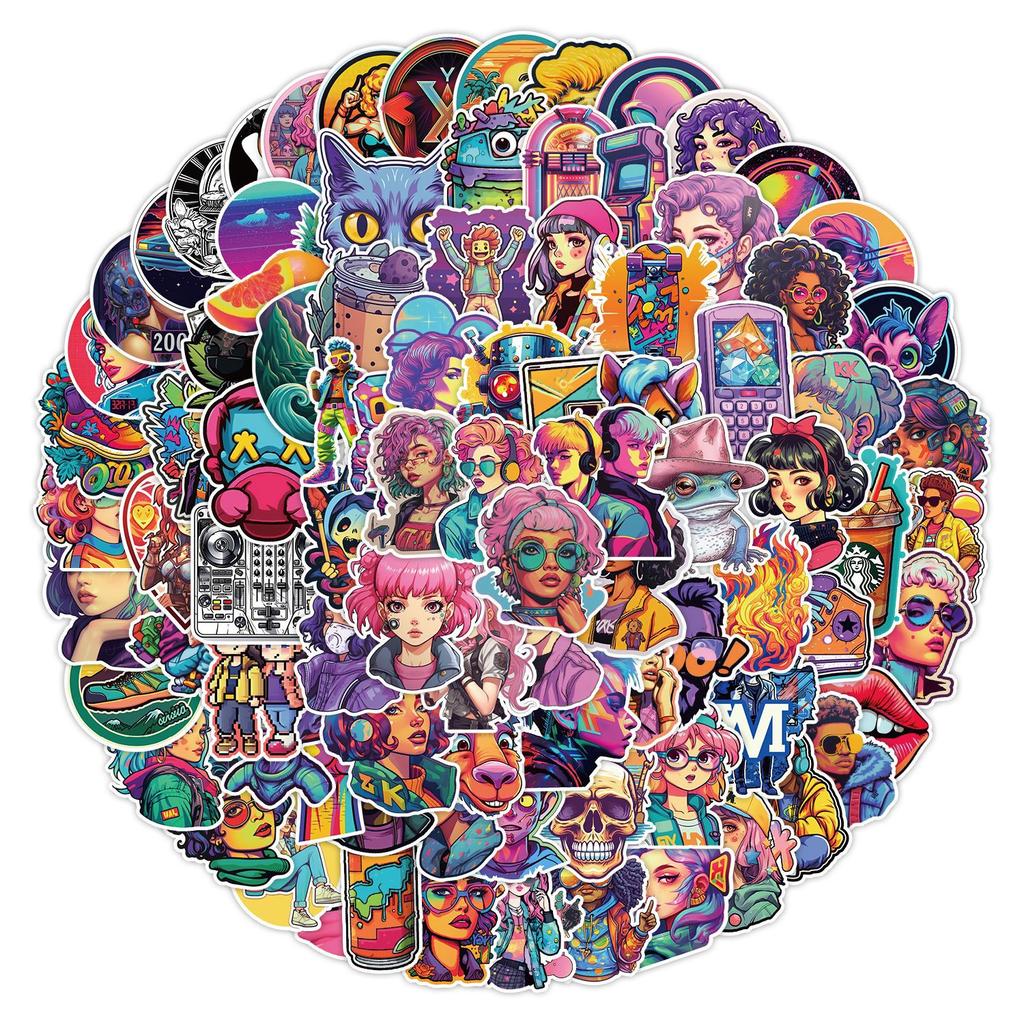 100 Y2K Style Graffiti Stickers Suitcase Skateboard Car Decoration Stickers Waterproof Creative Children's Stickers