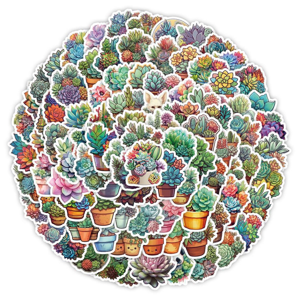 100 Plant Succulent Graffiti Stickers Suitcase Guitar Mobile Phone Decorative Stickers Waterproof Teaching Stationery Stickers