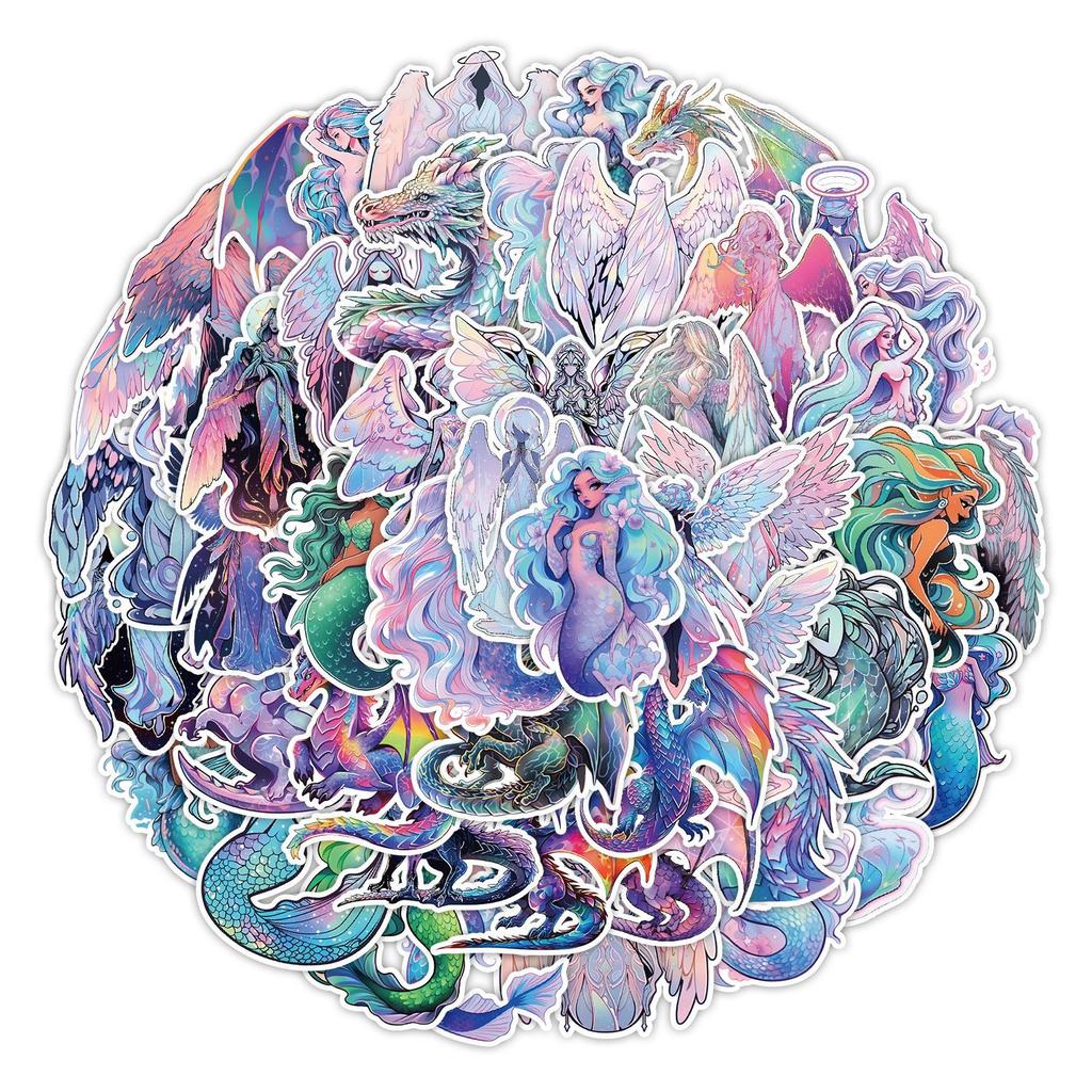 50 New Angel Holographic Stickers Skateboard Suitcase Computer Decoration Stickers Waterproof Creative Hand Note Stickers