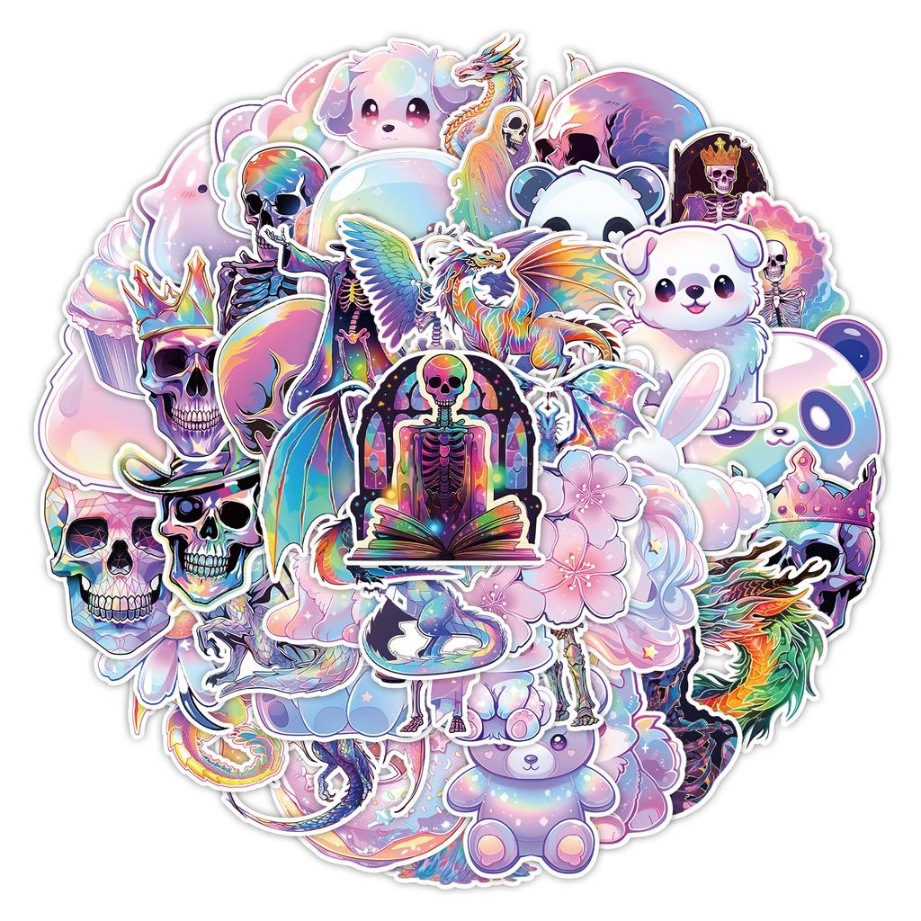 50 Cute Cartoon Holographic Stickers Mobile Phone Water Cup Computer Decoration Stickers Waterproof Creative Children's Stationery Stickers