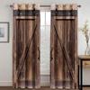 Two Piece Set of Curtains, Metal Grommets. Dark Brown, Barn Wooden Door. Polyester, with Dustproof and Waterproof Properties