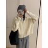 New Short Casual Pocket Design Double Zipper Long Sleeve Drawstring Hooded Knitted Cardigan Top Women