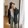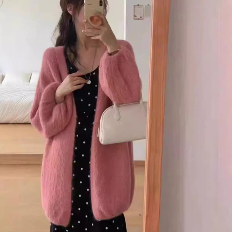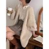 Autumn and Winter New Temperament Loose Lazy Wind Knitted Sweater Women's Thick V-neck Lantern Sleeves Warm Knitted Jacket