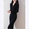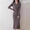 Autumn and Winter New Multi-button Lapel Knitted Dress, Feminine Temperament Slim-fitting Inside with Base Medium and Long Sweater Skirt
