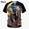 Summer Round Neck 3D Elephant Pattern Print Top Fashionable Casual Hip-hop Personality Short Sleeved Men's T-shirts