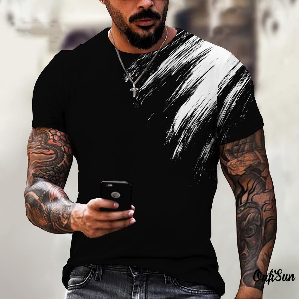 Summer Round Neck Abstract Brush Stroke 3D Print Top Fashionable Casual Short Sleeved Men's T-shirts