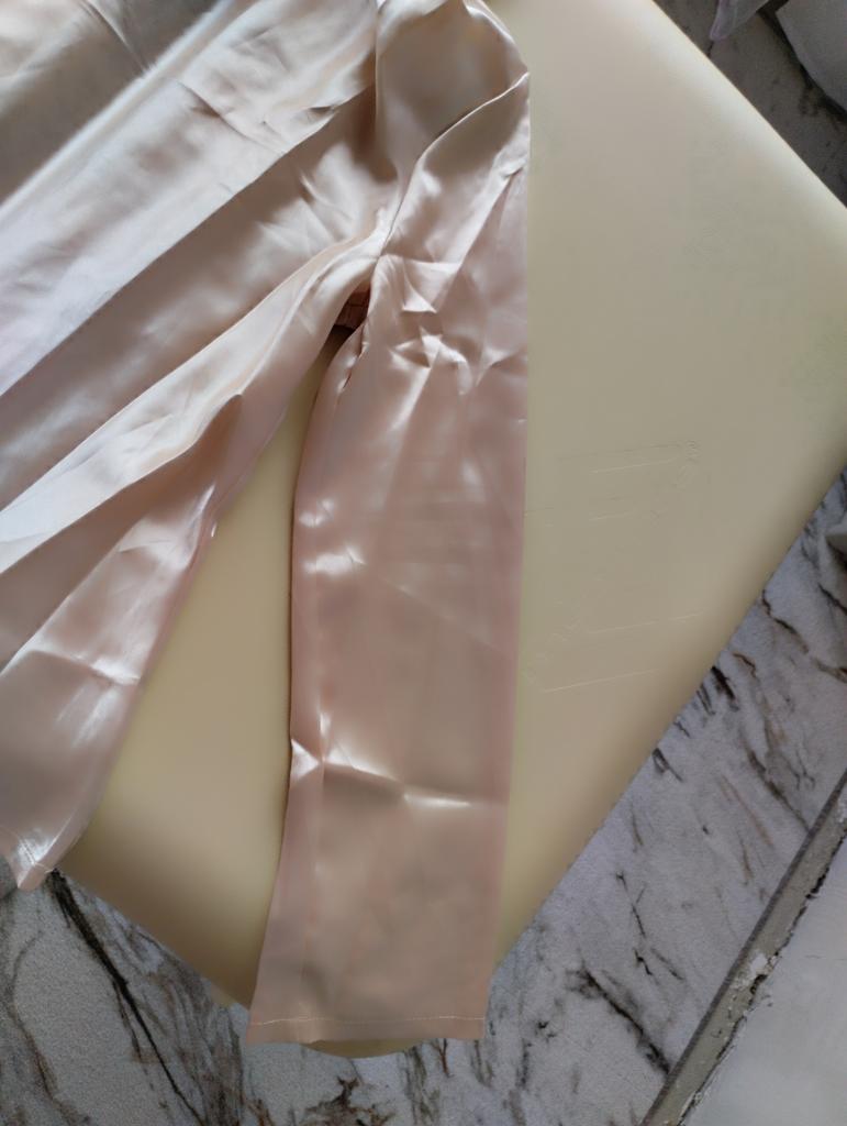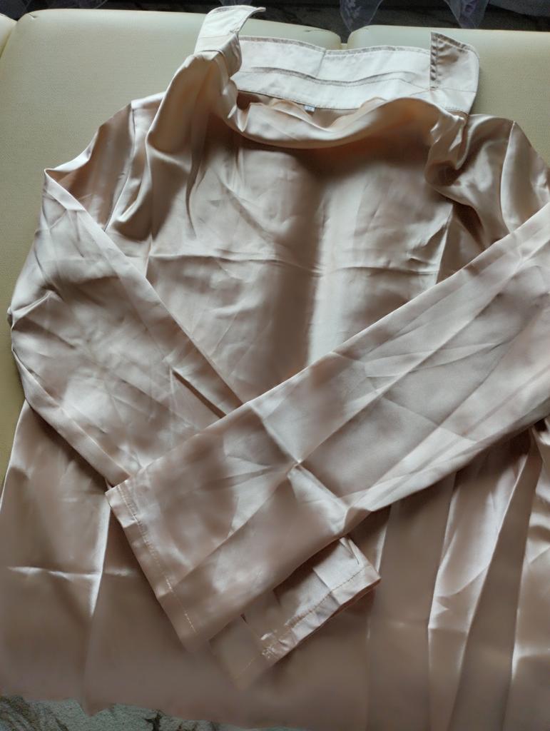 I received a blouse that looks nothing like the one in the picture. It's made of cheap, non-draping satin.