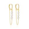 925 Sterling Silver Three Zircon Drop Long Chain Gold Hoop Buckle Piercing Earrings For Women Casual Jewelry Party Gift