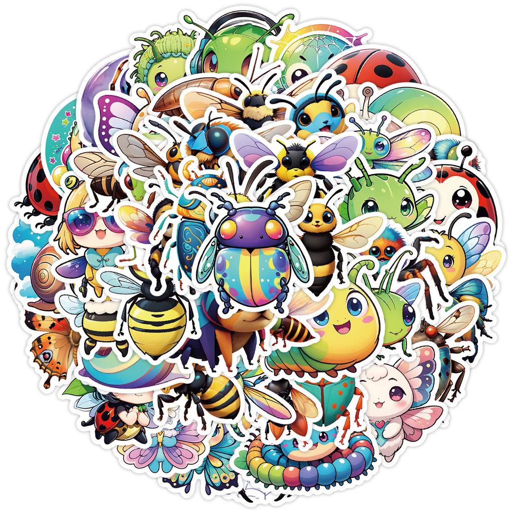 50 Cute Animal and Insect Series Graffiti Stickers, Creative Stationery Stickers, Water Cup Waterproof Decorative Stickers