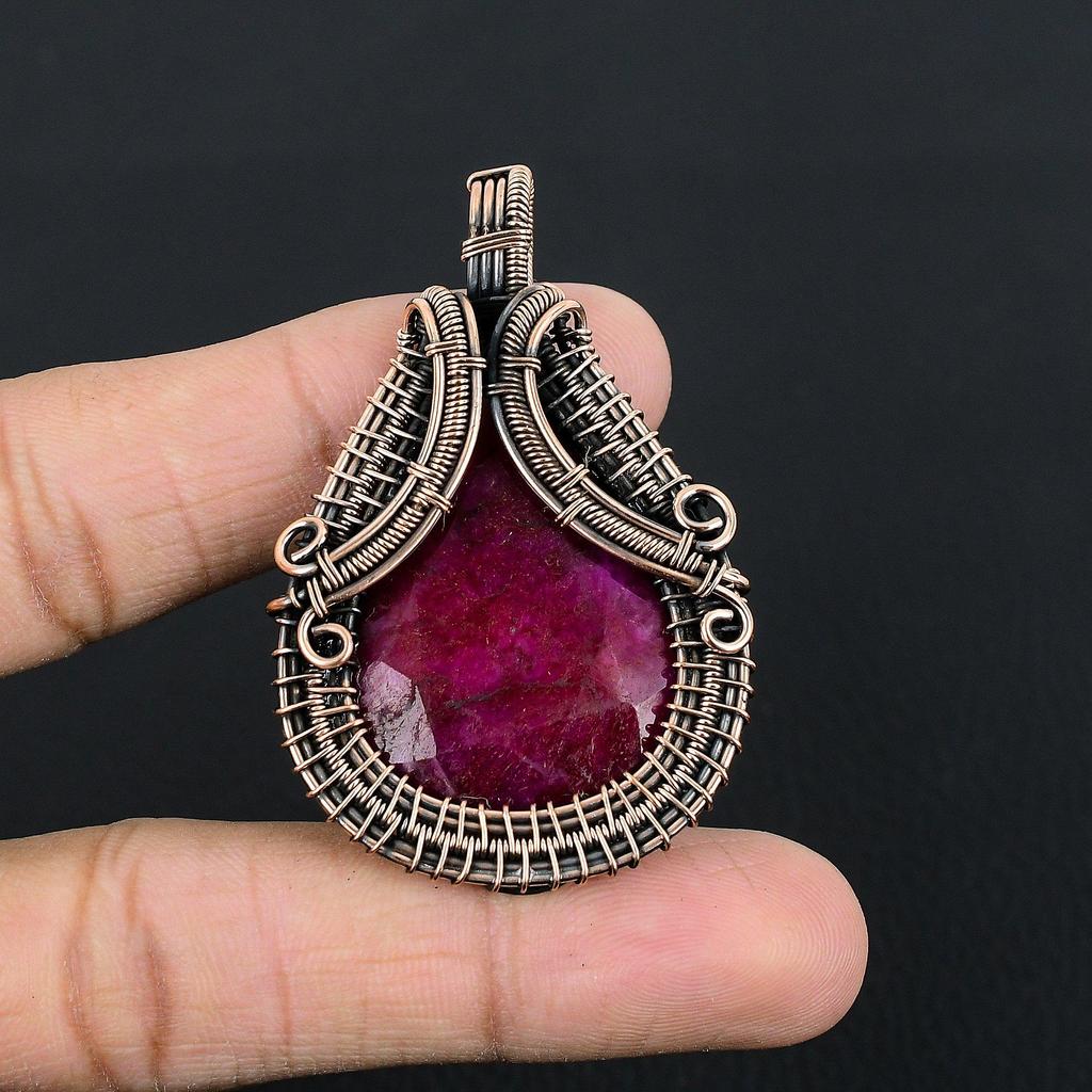 Ruby Pendant Gemstone Jewelry, 999 Copper Wire Wrapped Handmade Pendant, Latest Design Jewelry