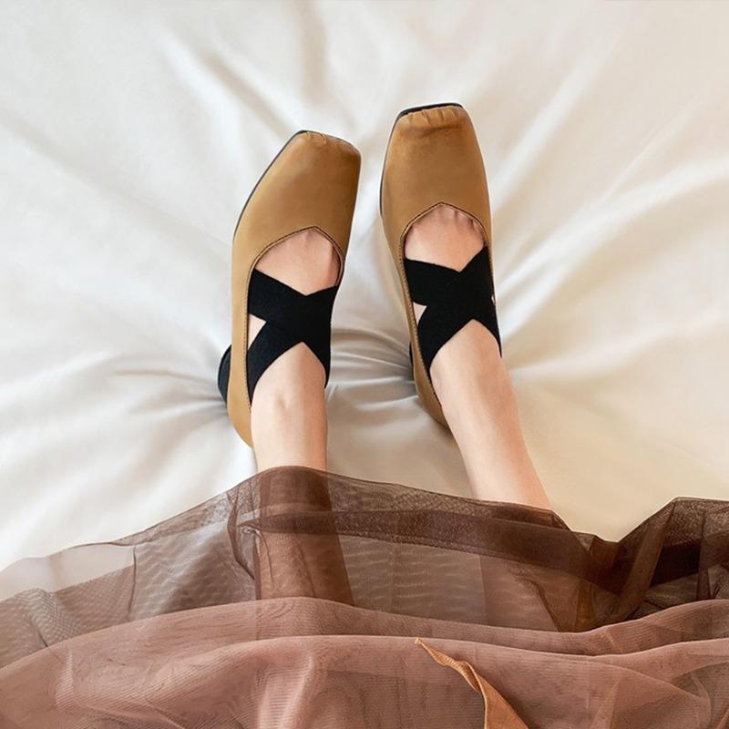 ! Shoes, Square Head Polished Retro Cross Strap Flat Heel Thick Heel, Ballet Shoes Single Shoes